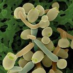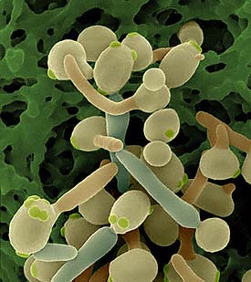 Candida albicans is yeast that lives in the mouth, throat, intestines and genitourinary tract of most humans and is usually considered to be a normal part of the bowel flora (the organisms that coexist with us in our lower digestive tract). It is actually a member of a broader classification of organisms known as fungi. C. albicans is a diploid organism which has eight sets of chromosome pairs. Interestingly, Candida is one of the few microorganisms that has a diploid gene controlling the same protein – this means that is capable of pleomorphic activity being able to mutate forms from the budding form to the mycelial, pathogenic form. Its genome size is about 16 Mb (haploid), about 30% greater than S. cerevisiae (baker’s yeast).