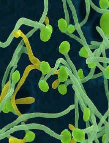 The problem begins when the normal, budding Candida species that we have in our gut, which 90% of babies are born with, actually changes form to the mycelial of hyphae form which is pathogenic or disease-causing. This only happens when the internal mileau of the gut and other tissues becomes more acidic, either through taking a variety of drugs that wipe out the lactobacillus species, or through eating very acidic foods such as sugar and other refined products. It appears that this change in pH can trigger genes in the Candida to begin a pleomorphic change into a stealth organism that is very virulent – it can increase itself from 1 to 100 cells in 24 hours. These 100 cells can then produce 100 each in the next 24 hours, and so on – by the 5th day you have 100 million Candida cells – this is really explosive growth!