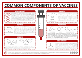 You can find the components of most of the vaccinations that are used today, taken directly from the Center for Disease Contol (CDC) official website at https://www.cdc.gov/vaccines/pubs/pinkbook/downloads/appendices/B/excipient-table-2.pdf or download it HERE