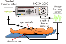 These returning oscillations help to balance the patient electromagnetically, and are again fed into the BICOM device for further analysis. The process is repeated constantly in fractions of a second. The pathological signals in the body are consequently reduced and finally extinguished, and the physiological endogenous regulatory forces can regulate the biological process unhindered.